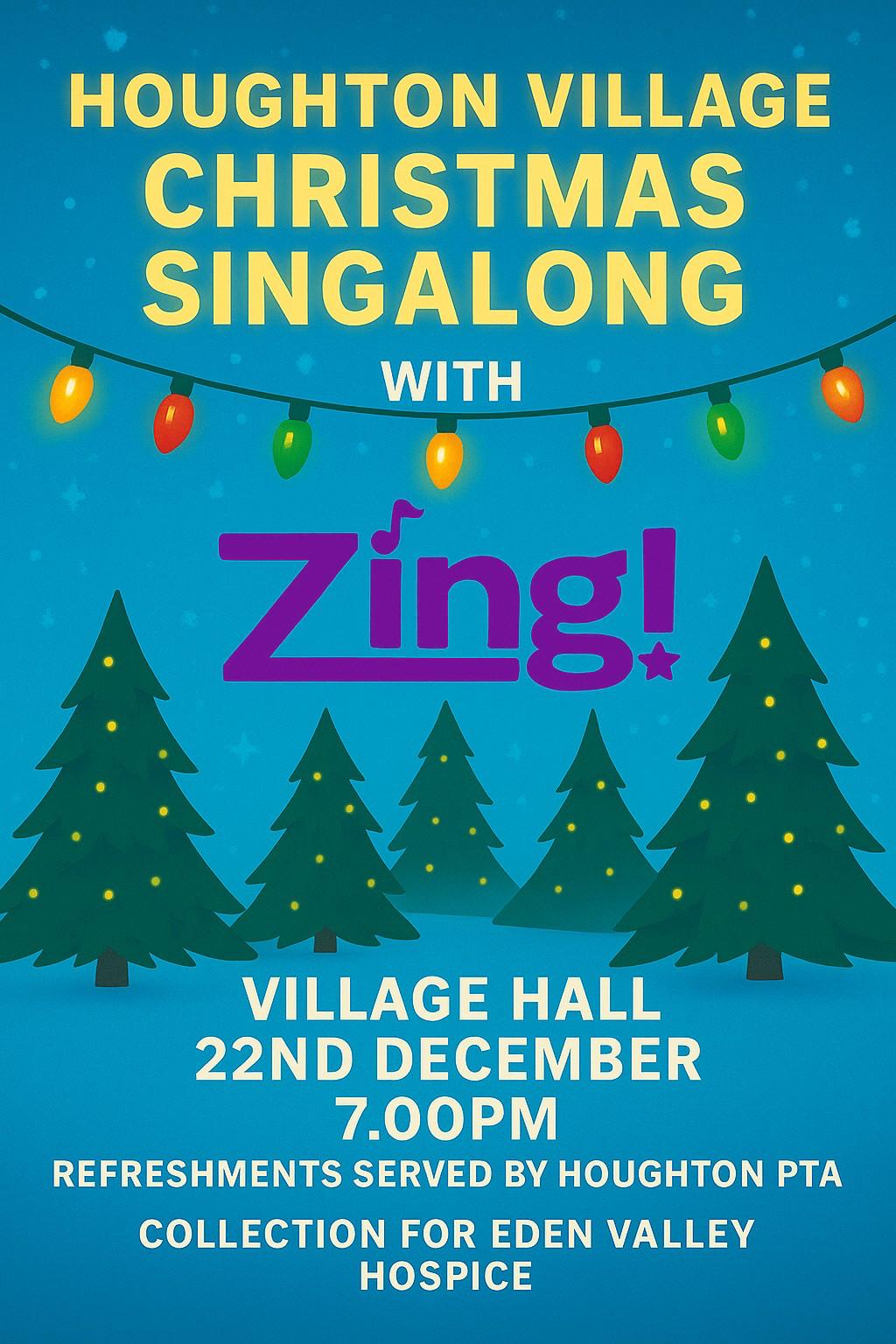 Join Houghton School PTA and the Zing Choir for their Annual Christmas Singalong!Refreshments will be served.There will also be a collection in support of Eden Valley Hospice.